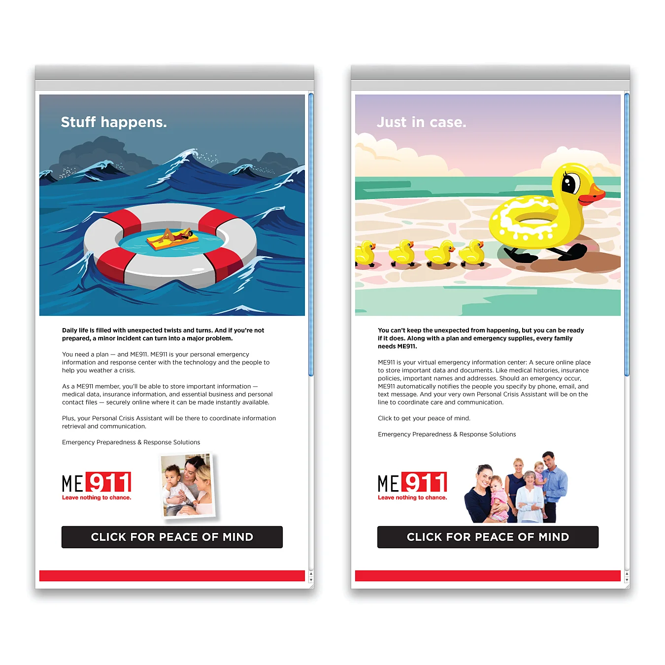 ME911 is an innovative company providing digital disaster preparedness and emergency response solutions for individuals, families, and organizations. By safely storing key information and documents online, me911 delivers peace of mind. For us, it was soup to nuts: brand strategy, positioning, partner/trade outreach programs, print and digital advertising.